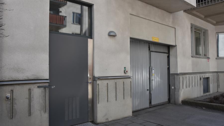 I källarplanet finns garage, lägenhetsförråd, tvättstuga, samt cykel- och barnvagnsförråd. I garaget finns 61 bilplatser – samtliga med laddmöjlighet – och 2 motorcykelplatser. På lokalgatorna utanför fastigheten har föreningen 9 öppna parkeringsplatser.